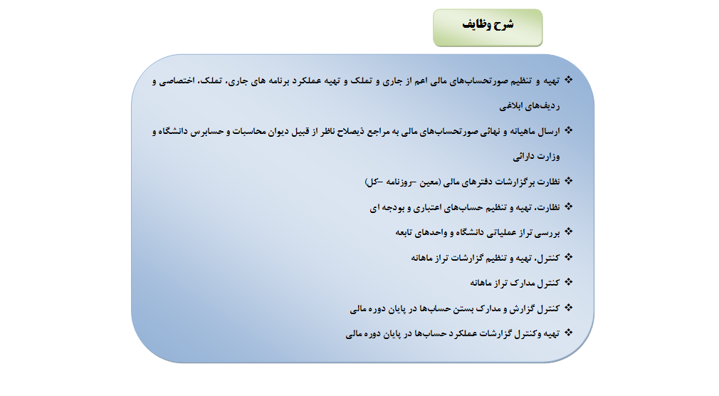 شرح وظایف واحد دفترداری